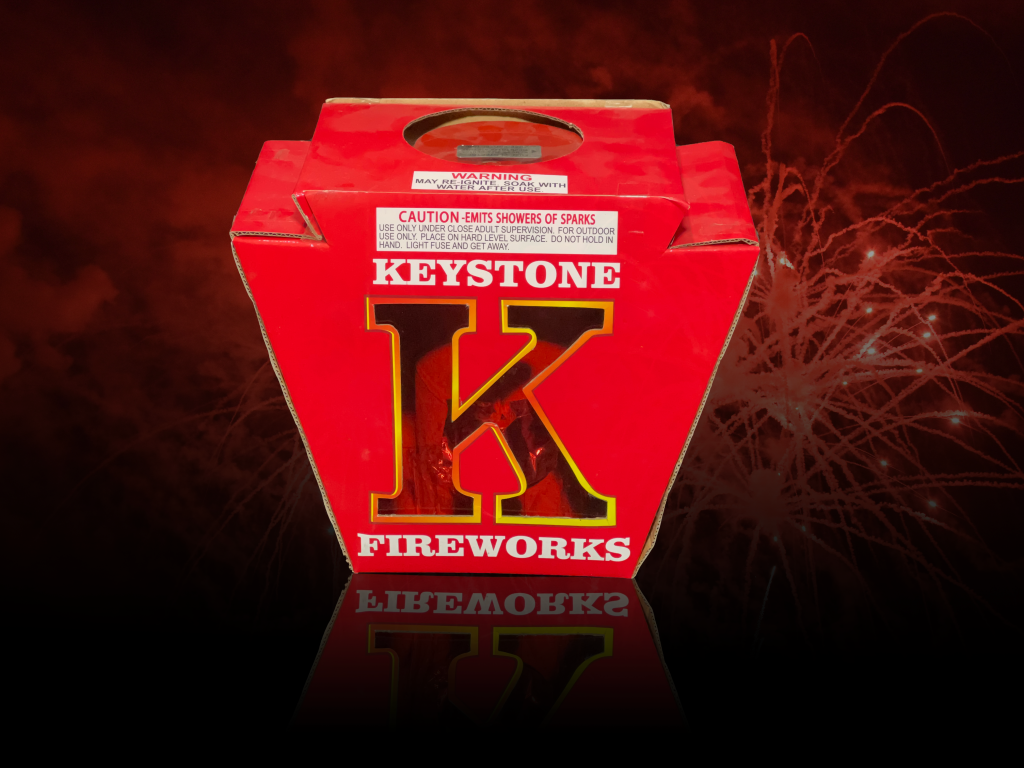 A fast-paced fountain loaded with large white star bursts and mixes of pops and color! A fitting product to celebrate Keystone’s anniversary.